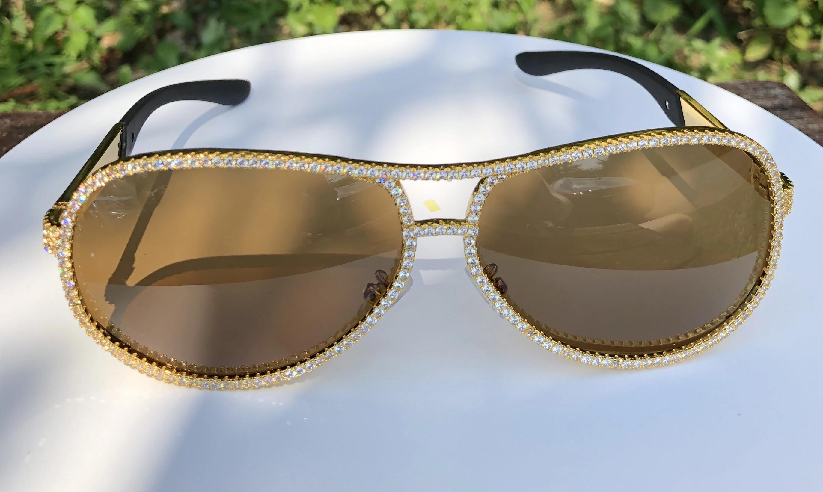 Tinted Pilot Bling Bling Sunglasses CZ Iced Out