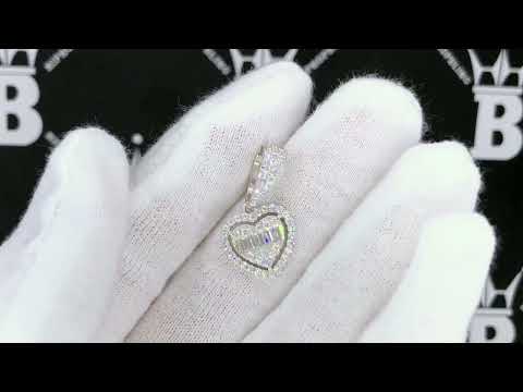 Womens Heart Baguette VVS Moissanite Pendant .925 Sterling Silver. This iced out Moissanite Pendant is simply breathtaking and displays an incredible bling bling shine. We insisted on using the finest Moissanite stones available to craft this perfect high end 'diamond' bling bling Moissanite Micro Pave Charm. Moissanite stones are carbon based stones just like real Diamonds. The benefit of our Moissanite hip hop jewelry is that you get a better shine for much less money than genuine Diamonds. Our Moissanite Stones have a higher refractive index than real Diamonds and rank 9-9.5 on Mohs hardness scale.